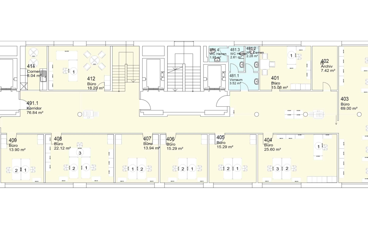 I moderni locali con una SUL di 495m2, si trovano al 3. ed al 4. piano, connessi da una scala interna ed offrono quanto segue: